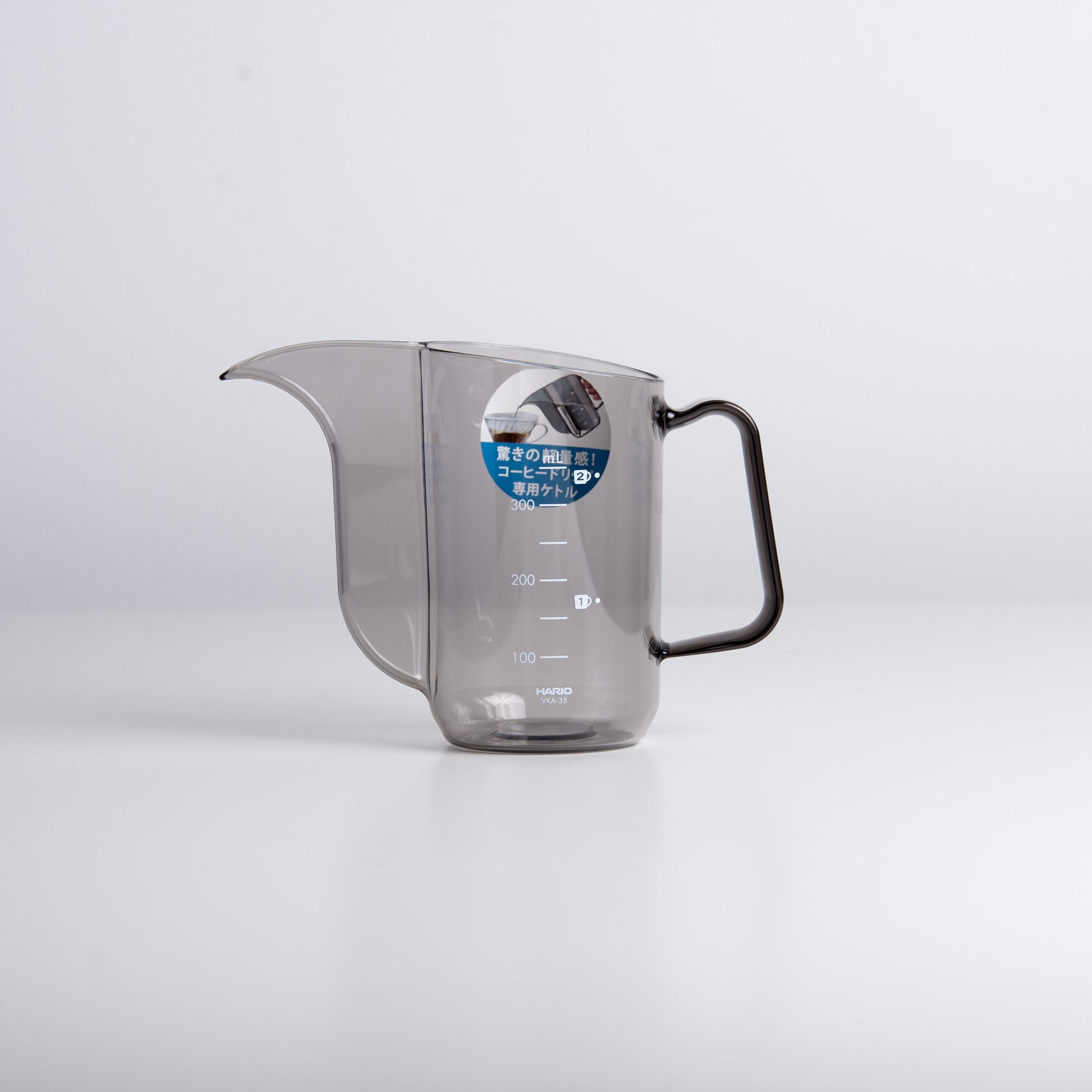 The Hario AIR is the perfect way to make a pour over coffee without a more expensive goose neck kettle. The AIR pouring kettle enables you to accurately pour the brewing water onto the coffee bed in the exact position you want it, with full control of the flow rate. Simply add hot water to this plastic jug and pour away!