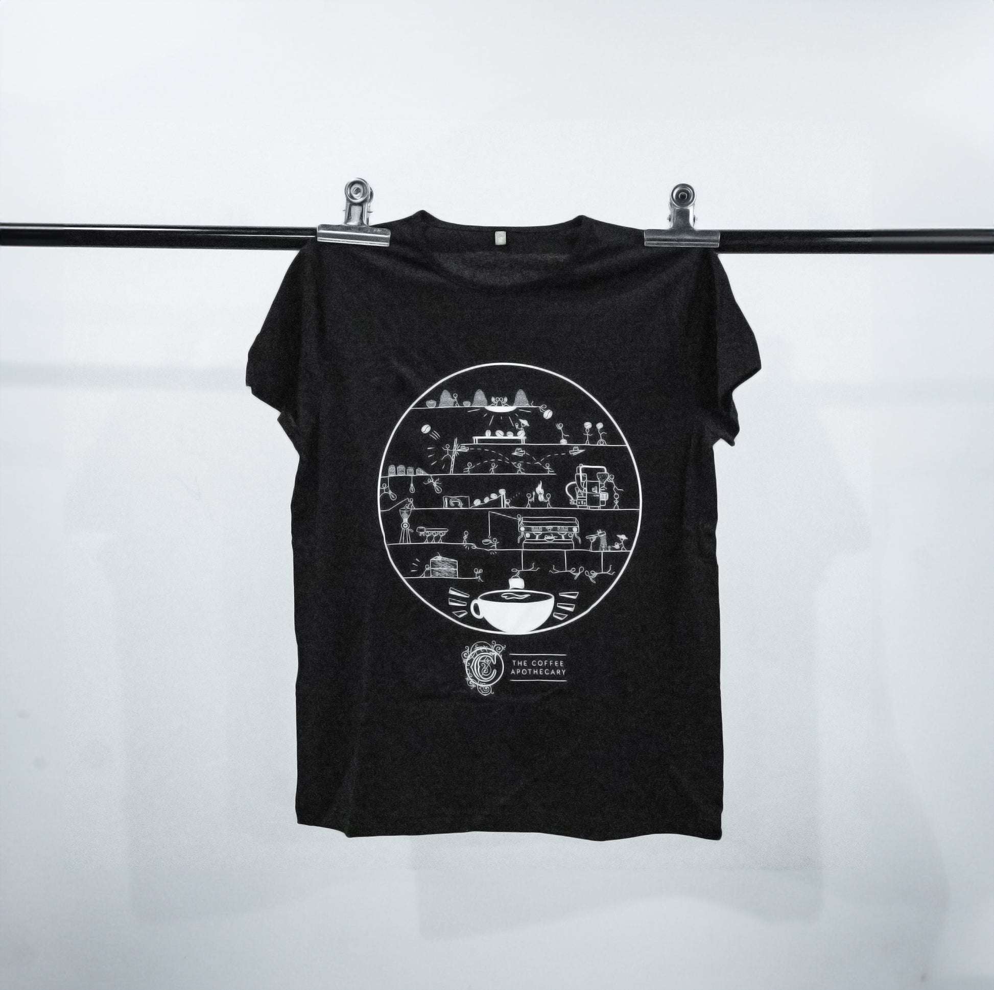 Follow the journey that coffee takes from farm to cup on this organic, fairly traded cotton t-shirt.