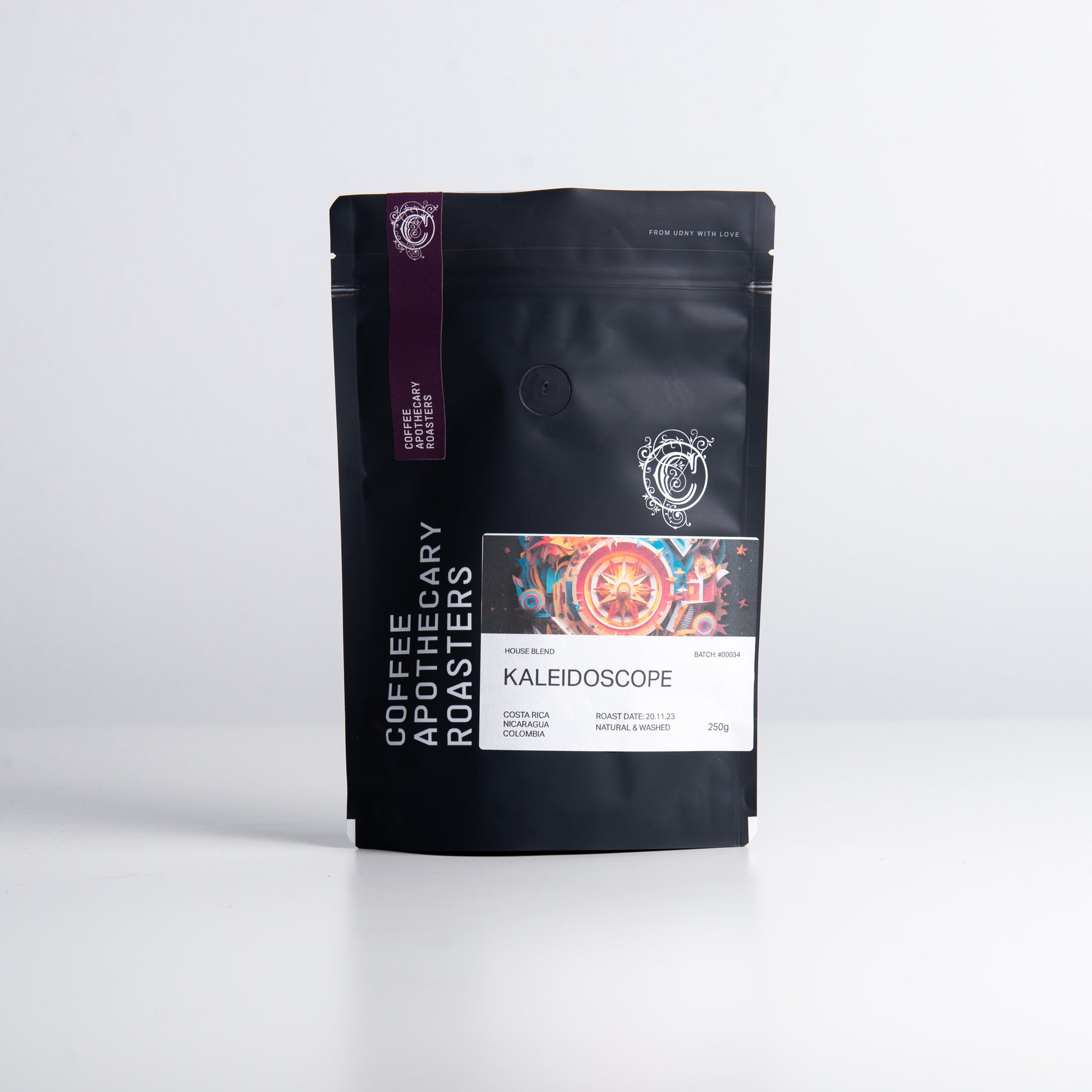 Our house blend, Kaleidoscope, is the perfect balance of juicy berry fruit flavours with layers of rich chocolate and a tantalising orange acidity.